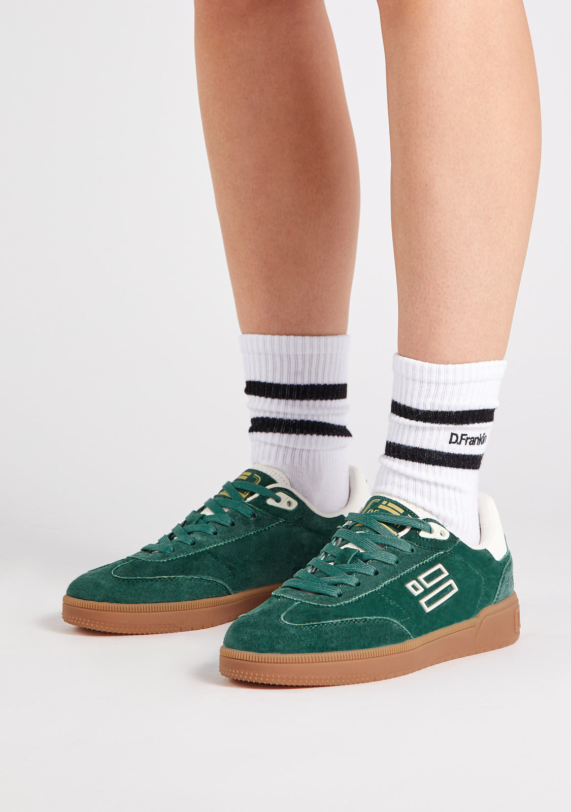 Rebel D.Franklin oblikuje nisku siluetu u nijansama zelene. Sadrži odabir detalja koji definiraju njegovu suštinu. Ima reljefni logo na peti i potplatu, izvezenu zastavu sa strane i ime dizajna na stražnjoj strani. Gumeni potplat debljine 2 cm pruža vrhunsko prianjanje i vuču.