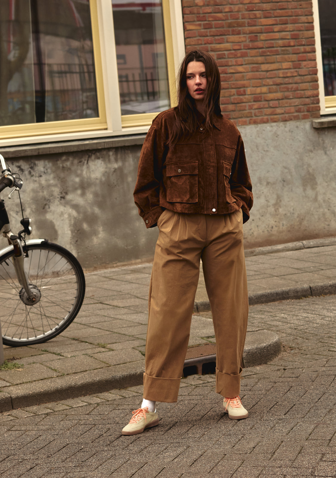 Vyrobeno se svrškem z 80 % semišové kůže pro strukturovaný pocit a pohodlné padnutí již od prvního dne. Šněrování poskytuje nastavitelné a bezpečné upevnění, které se přirozeně přizpůsobuje pohybu chodidla.