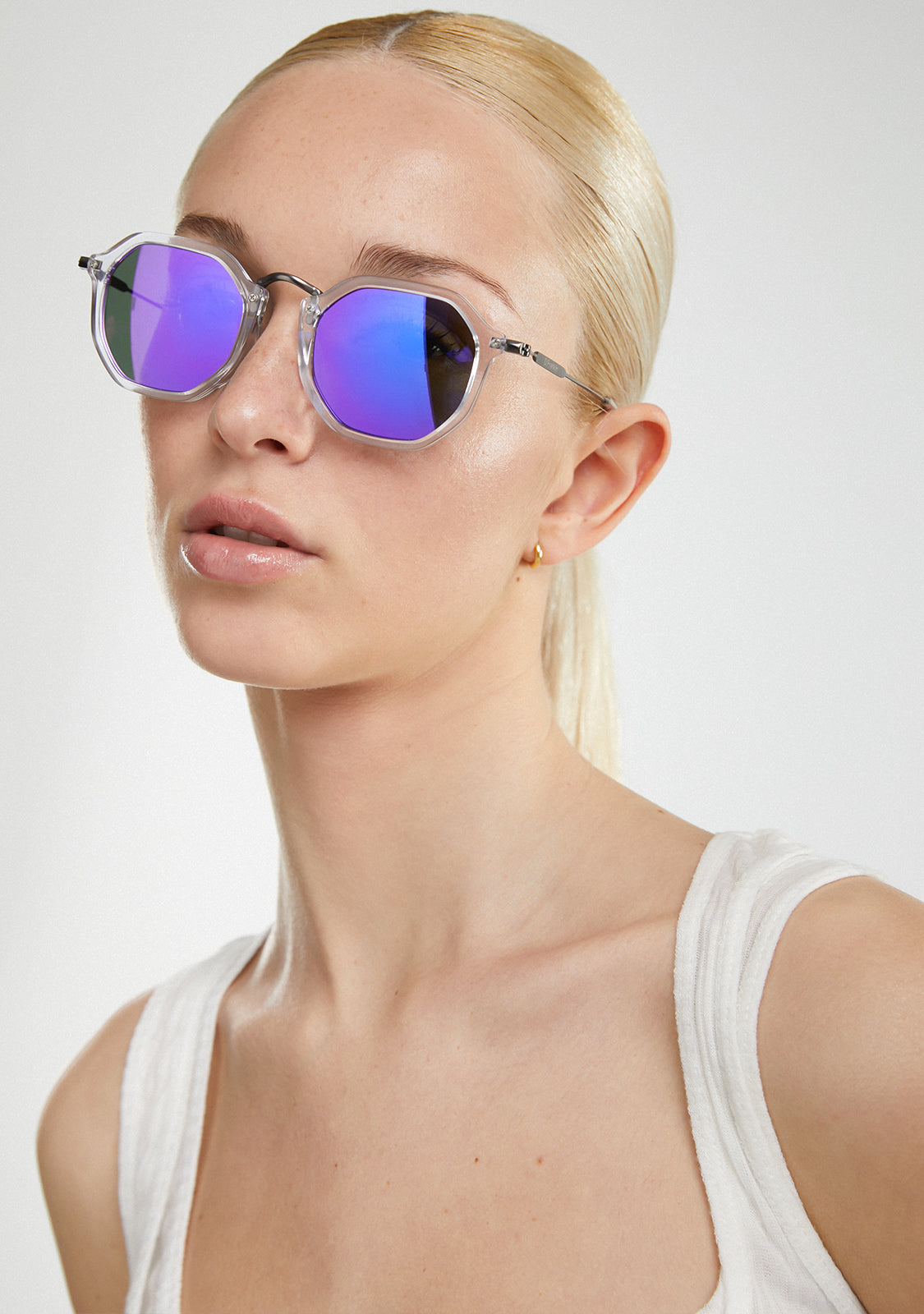 Polikarbonat leće i jasna oktagonalna kontura pojačavaju ikonični stil. Sadrži naše prepoznatljive D.Franklin detalje: logo ugraviran na oba metalna stuba i naš grb na desnoj leći. Sa širinom leće od 51 mm i prednjim okvirom od 148 mm, ove naočale ističu osobine svakog lica. Bočne ruke od nehrđajućeg čelika duge su 145 mm.