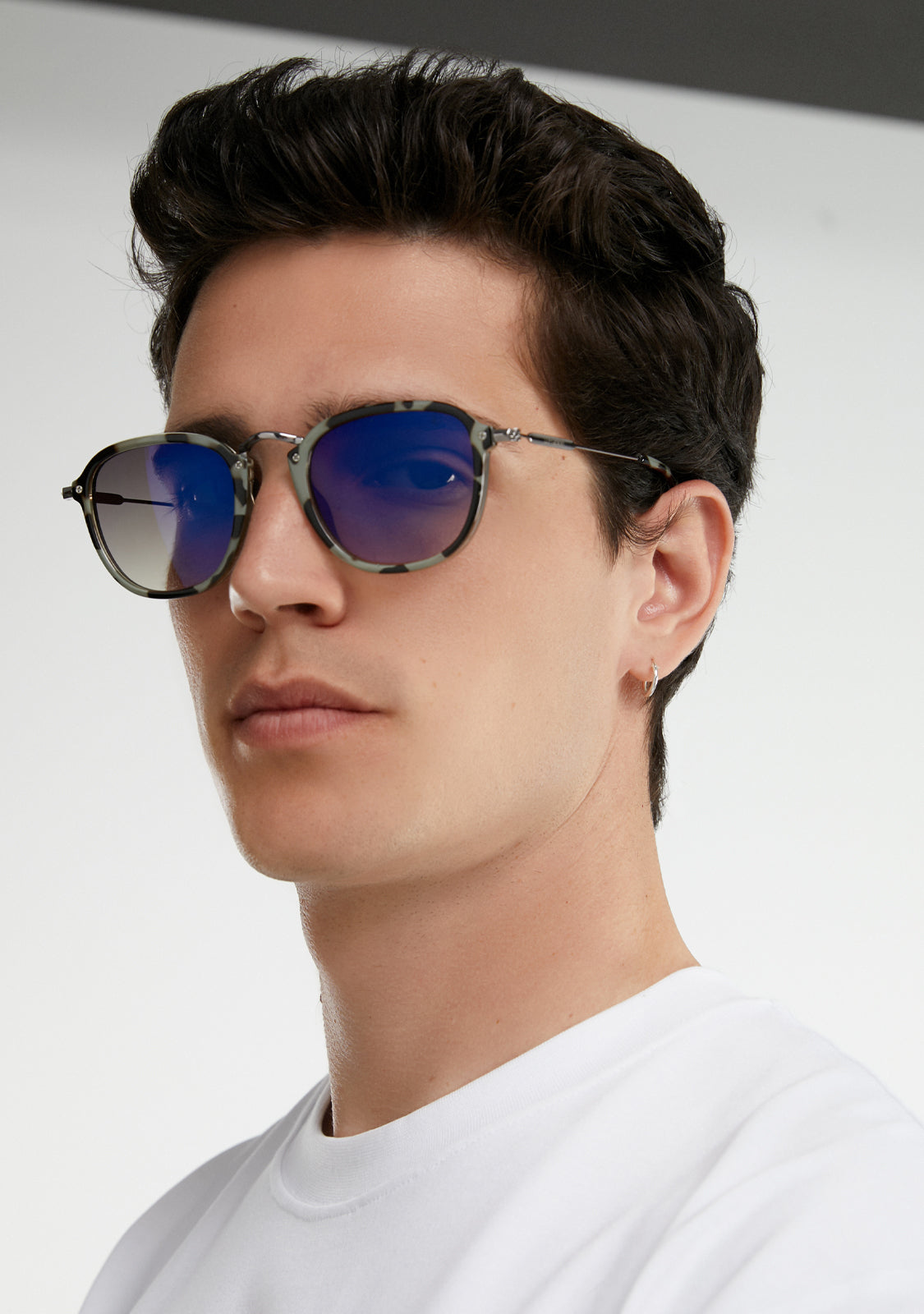 Dimnjaste polikarbonatne zrcalne REVO leće imaju metalni siluetu s kvadratnim okvirom. Sadrži potpisne detalje naše marke: logo ugraviran na oba metalna stuba i naš grb na desnoj leći. Sa širinom leće od 51 mm i prednjim okvirom od 147 mm, ove naočale ističu svako lice. Bočni stubovi su izrađeni od nehrđajućeg čelika i imaju dužinu od 145 mm.