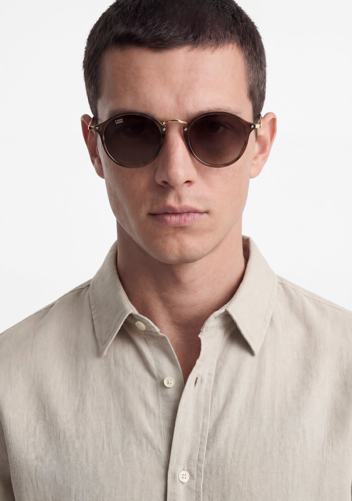 Zaobljene smeđe leće i odgovarajući tonovi okvira pojačavaju izgled ovog modela iz sedamdesetih. Sadrži naše prepoznatljive D.Franklin detalje: logo ugraviran na oba metalna stuba i naš emblem na desnoj leći. S širinom leće od 49 mm i prednjim okvirom od 148 mm, ove naočale odgovaraju većini lica. Bočni stubovi su dugi 145 mm.