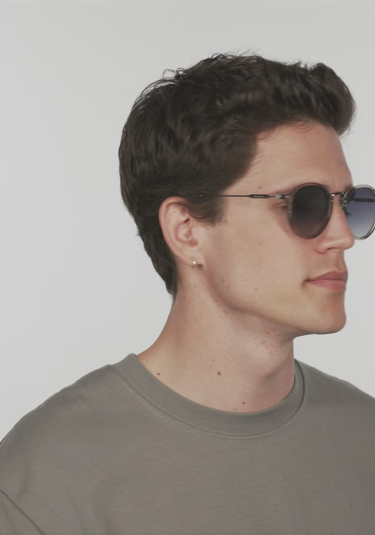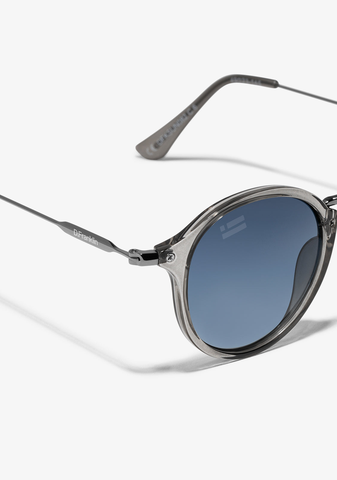 Zaobljene plave dimne leće i sivi okvir pojačavaju klasičnu estetiku ovog modela. Sadrži naše prepoznatljive D.Franklin detalje: logo ugraviran na oba metalna sljepoočnica i naš emblem na desnoj leći. S širinom leće od 49mm i širinom okvira od 148mm, ove naočale će laskati većini lica. Bočne sljepoočnice su duge 145mm.