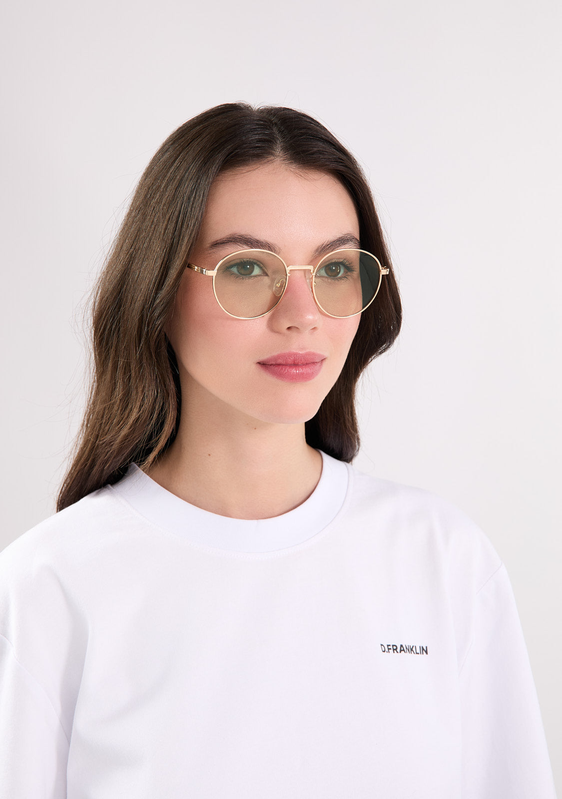 Dizajn Round Legacy ima metalni završetak s ovalnom estetikom. Njegov okvir u zlatnoj boji uparen je s fotoosjetljivim G15 lećama koje smanjuju odsjaj i omogućuju suptilan pogled kroz njih te definiraju značajke lica. Prednja strana mjeri 139 mm, a širina leće je 52 mm. Naočale su duge 140 mm i uključuju naše prepoznatljive detalje. Retro, ali minimalistički komad koji će upotpuniti svaki outfit.