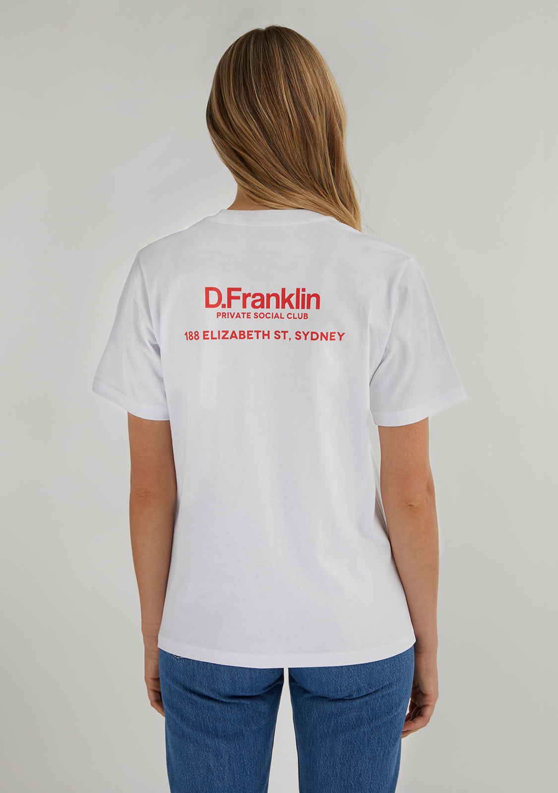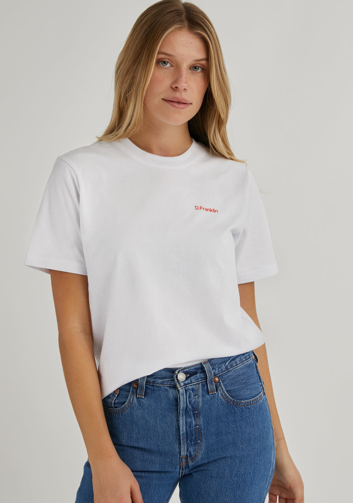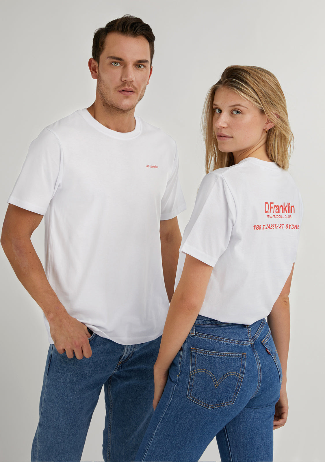 Minimalna majica od organskog pamuka. Narančasti natpis u čast Elisabeth Street, ulice u Sydney gdje smo nosili neke od prvih D.Franklin sunčanih naočala. Naša The Social Club kolekcija je poziv da se izgubite u četvrtima, naseljima i ulicama koje su nas inspirirale. Ugodan, prozračan i vrlo mekan odjevni predmet.