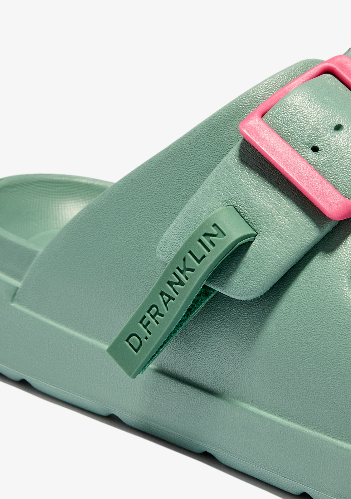 Njihove dvije podesive kopče u ružičastoj nijansi donose originalan kontrast na zelenoj podlozi te omogućuju sigurno i prilagođeno pristajanje. Otvoreni dizajn potiče prozračnost i održava vaša stopala svježima i udobnima tijekom cijelog dana.