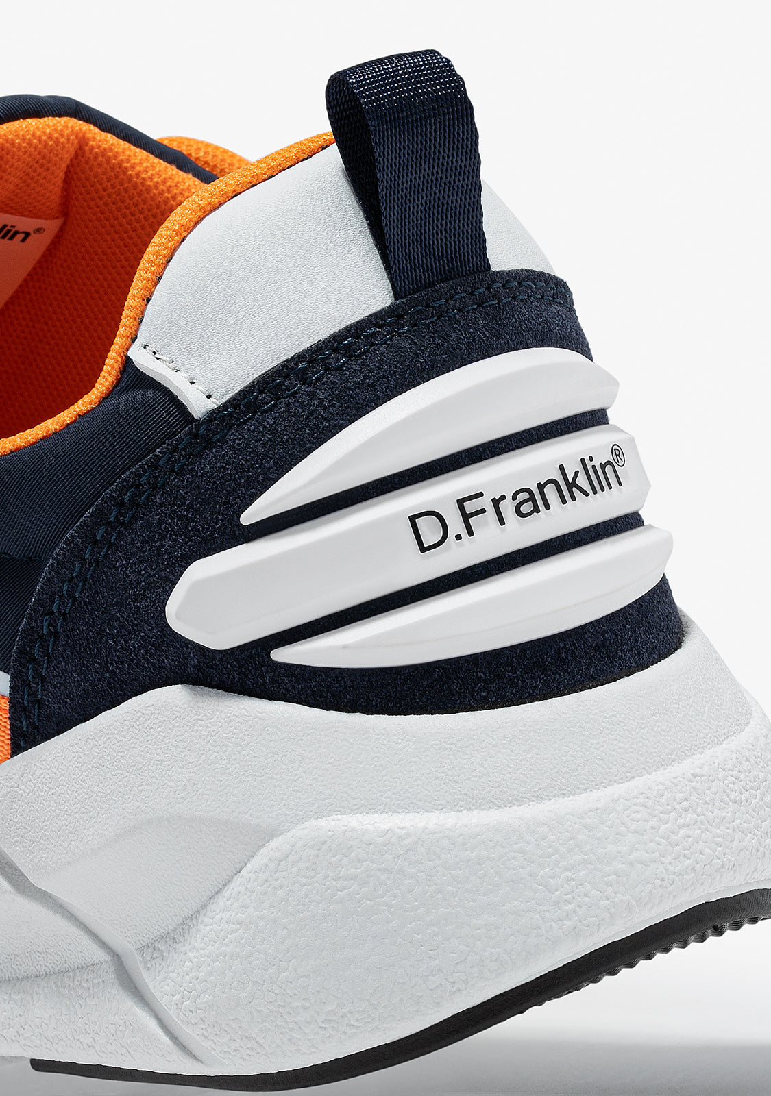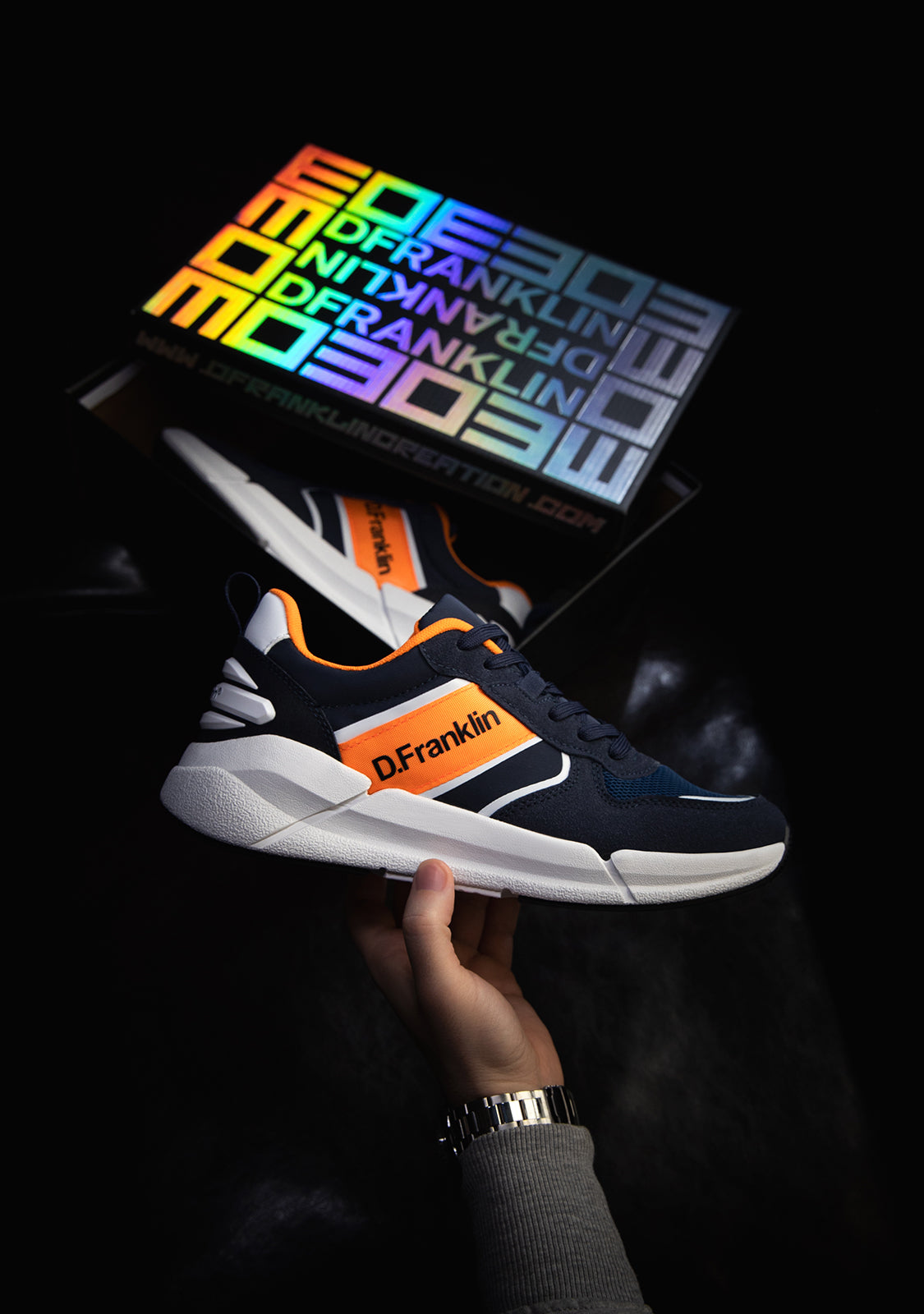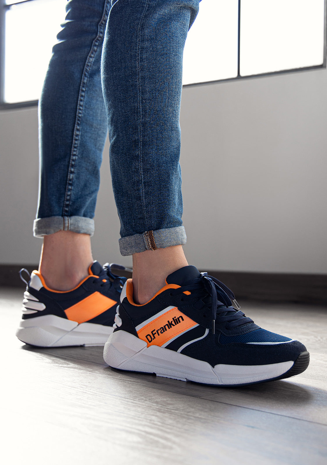 Fuzija između prošlosti i budućnosti. Kolekcija Walker kombinira izgled tenisica iz 80-ih s modernim stilom inspiriranim hrabrim bojama i različitim teksturama. Walker Navy / Orange kombinira mornarsku plavu s kontrastima u narančastoj i bijeloj boji kako bi postigao odvažne tenisice koje se ističu po svojoj