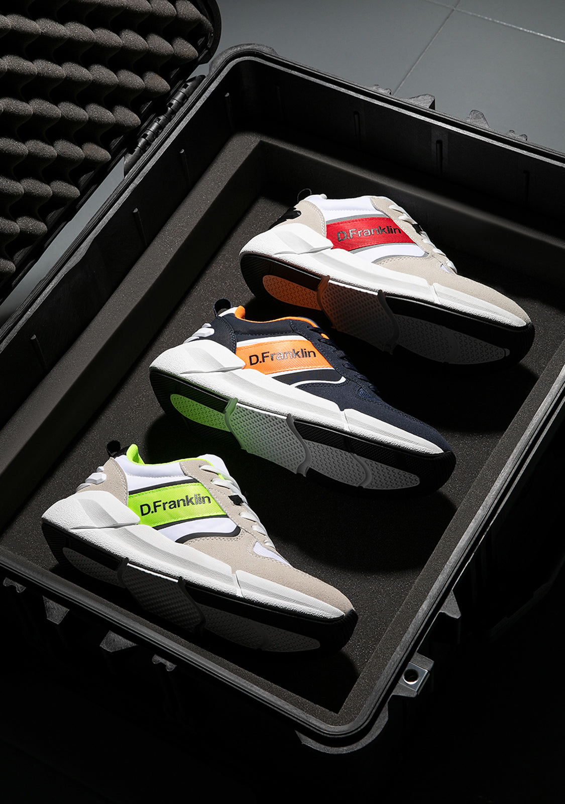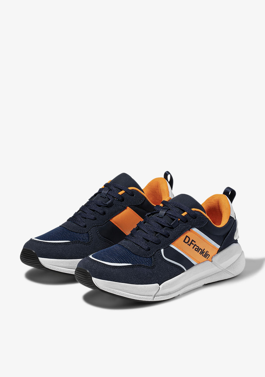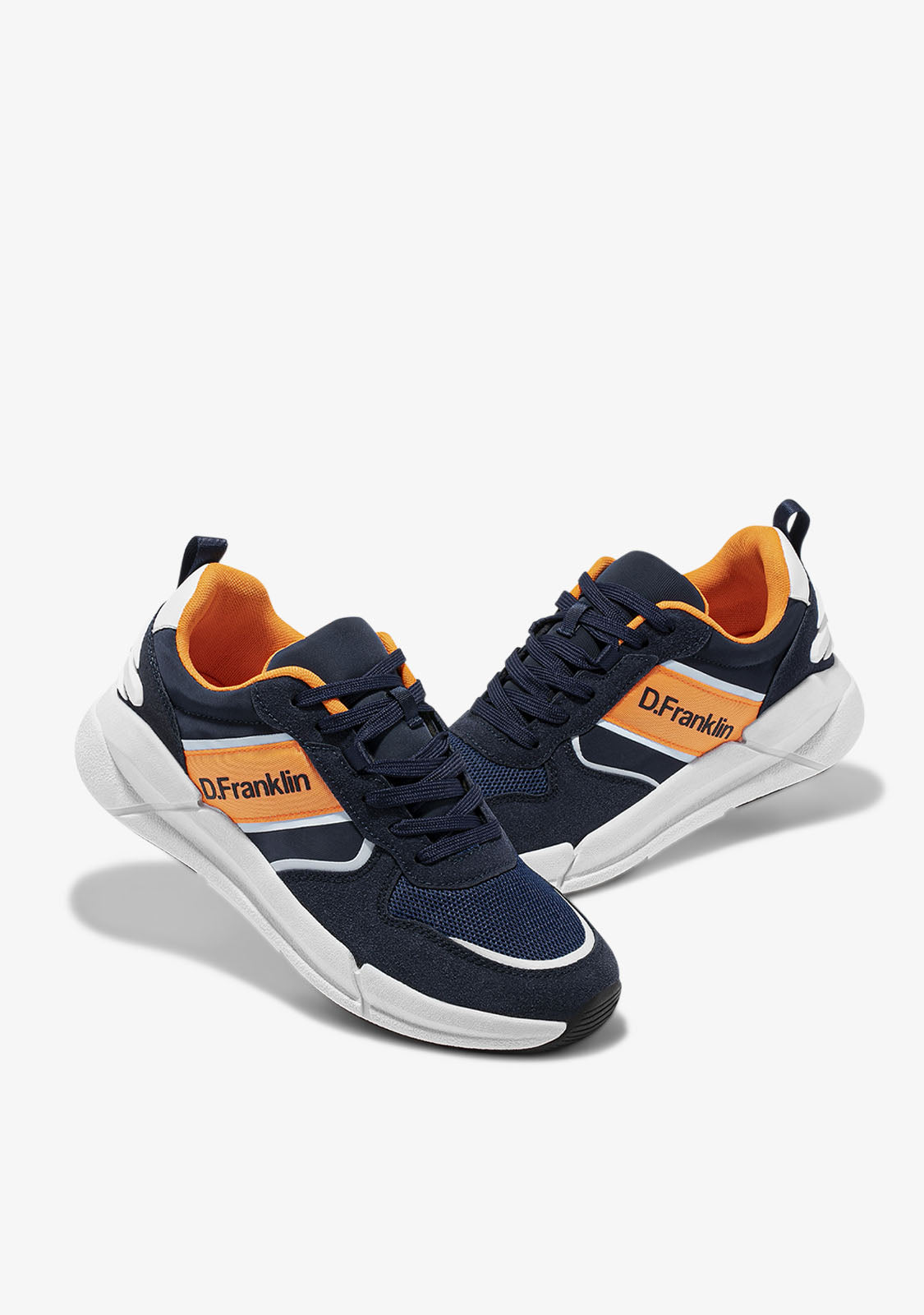 Fuzija između prošlosti i budućnosti. Kolekcija Walker kombinira izgled tenisica iz 80-ih s modernim stilom inspiriranim hrabrim bojama i različitim teksturama. Walker Navy / Orange kombinira mornarsku plavu s kontrastima u narančastoj i bijeloj boji kako bi postigao odvažne tenisice koje se ističu po svojoj
