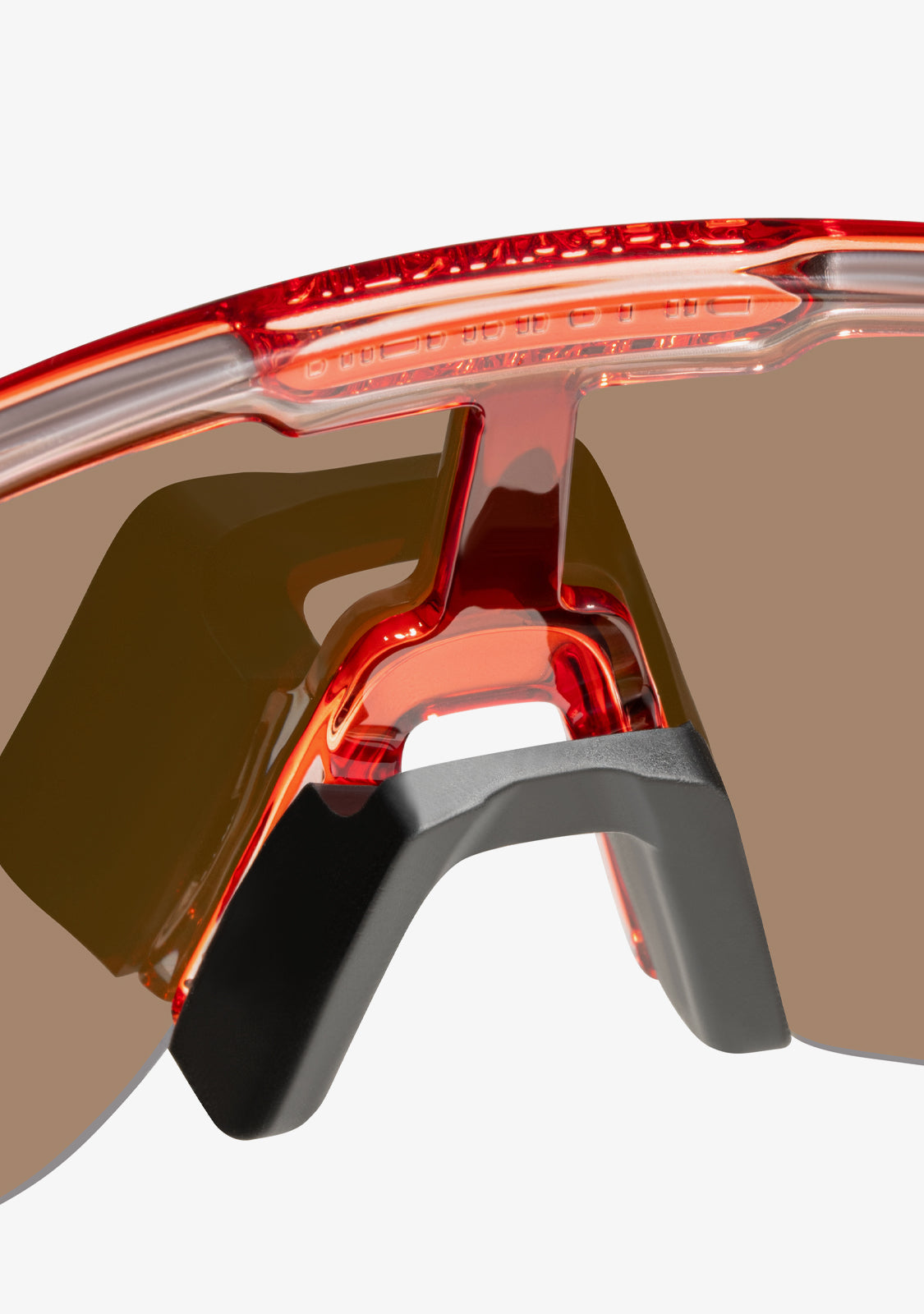 Sportske sunčane naočale s panoramskim lećama. Dizajn inspiriran brzinom i pokretom, stvoren za suočavanje s bilo kojim kontekstom.