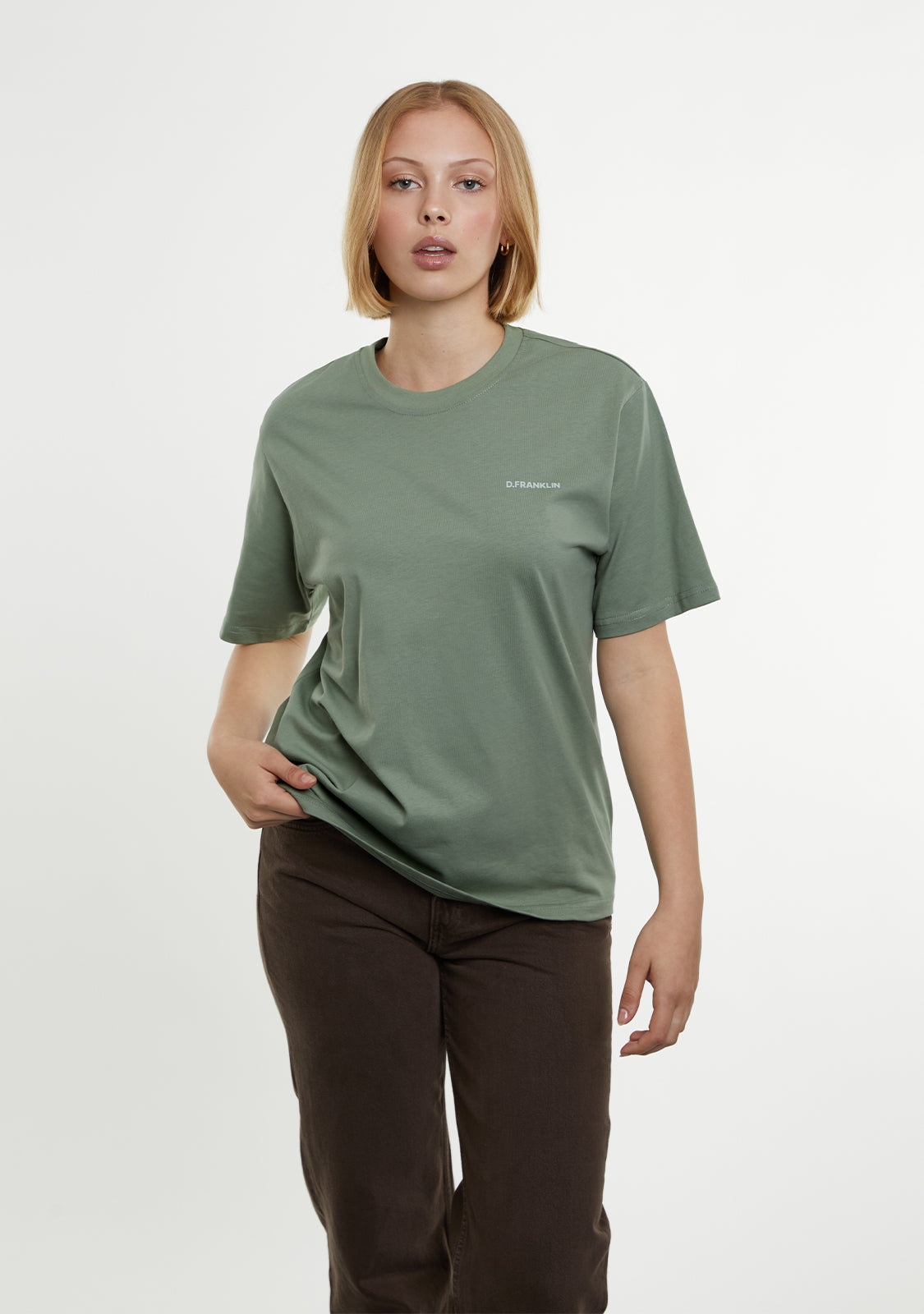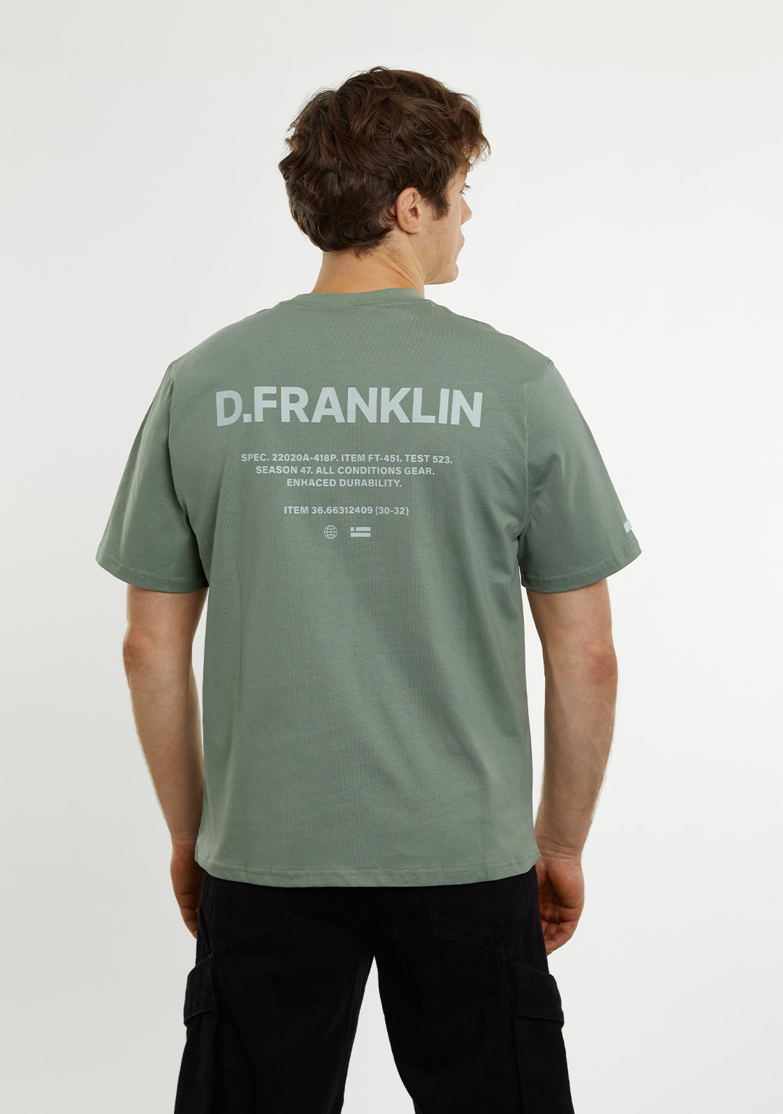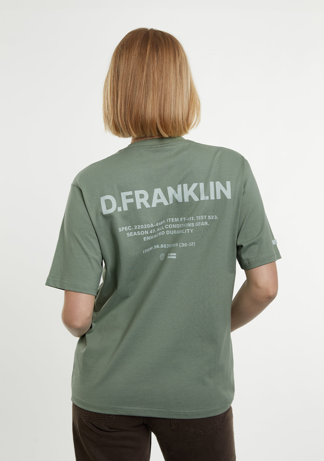Ova zelena majica kratkih rukava s okruglim izrezom ima D.Franklin logo na gornjoj lijevoj strani u bijelom kontrastu. Osim toga, stražnja strana ima ekskluzivni dizajn u istoj boji.